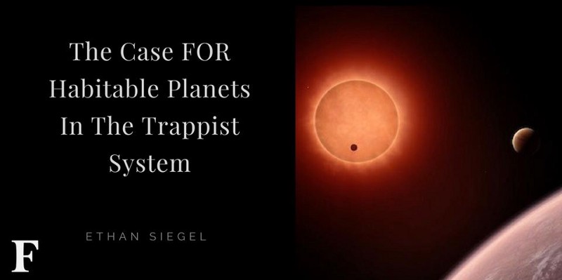 The star TRAPPIST-1 hosts seven worlds labeled Trappist-1 b through h. All the planets have sizes and masses comparable to the terrestrial planets in our own Solar System (that is, Mercury, Venus, Earth, and Mars). The densities of the TRAPPIST-1 planets tell us that they are rocky worlds. That is good news because the consensus among astrobiologists is that life will need a planet with a surface to get going (as opposed to a gas giant like Jupiter).
