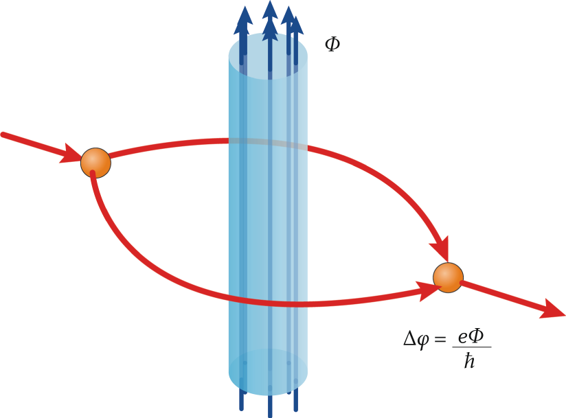 Now, here’s where it gets interesting: You can have a non-zero electric and/or magnetic potential in a region even where the electric and magnetic fields are both zero. For a long time, physicists wondered whether the potential was actually a physical thing, since it appears to be the fields, not the potentials, that affects the motions of particles in a measurable way. This is true in classical physics, but not exclusively in quantum physics. In particular, the potential couples to the phase of a charged particle’s wavefunction, and if you measure the phase of that charged particle — which you typically do with interference experiments — you’ll find that it does depend on the electromagnetic potential, not just on the electric and magnetic fields.