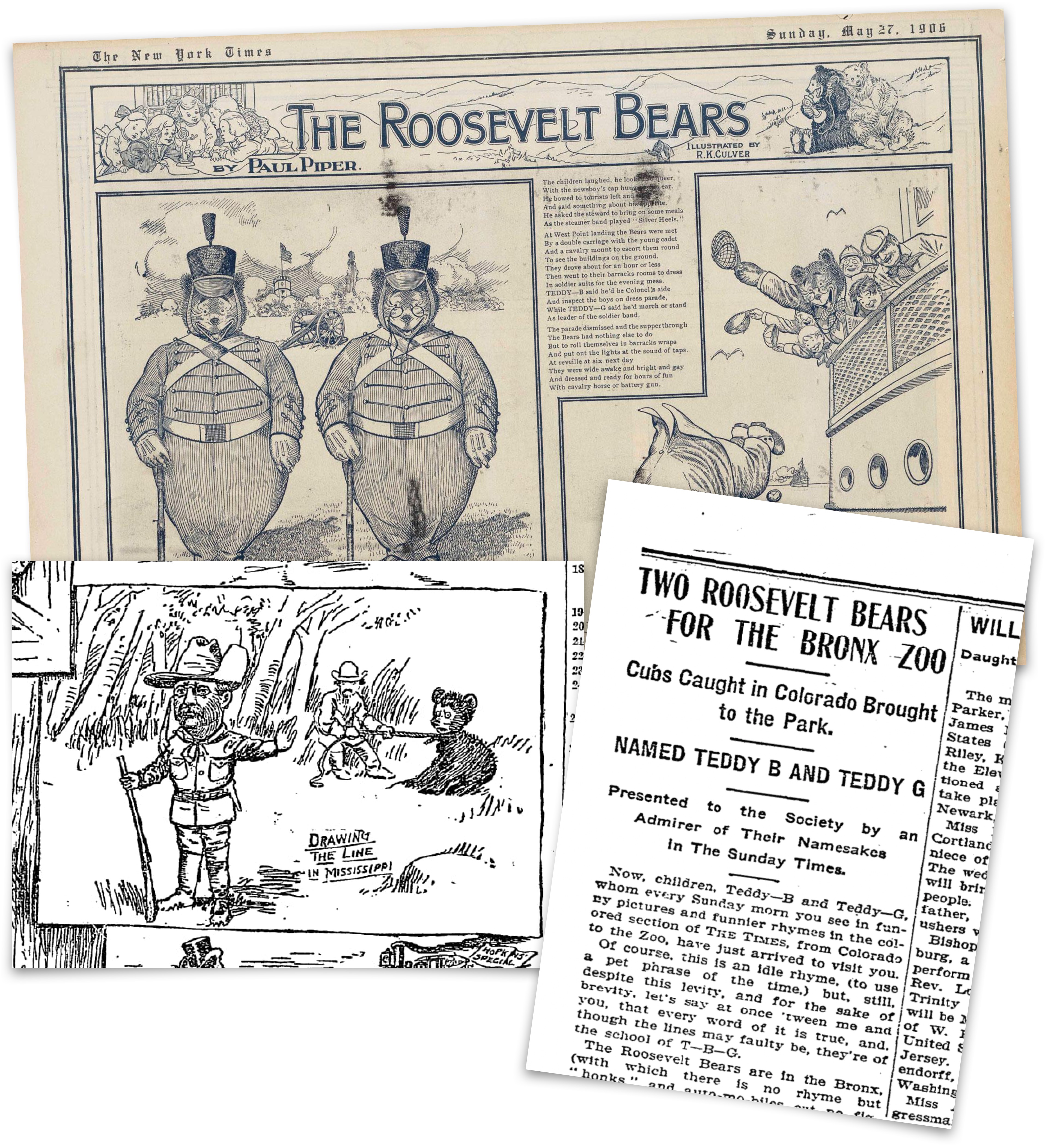 It is commonly believed this inspired a toy company (the Ideal Novelty and Toy Company) to produce “Teddy’s bears” after getting permission from the President himself. The cartoon associated Roosevelt and bears in the popular mind, and inspired a comic strip in the New York Times called “The Roosevelt Bears,” which was syndicated across the country for a number of years.