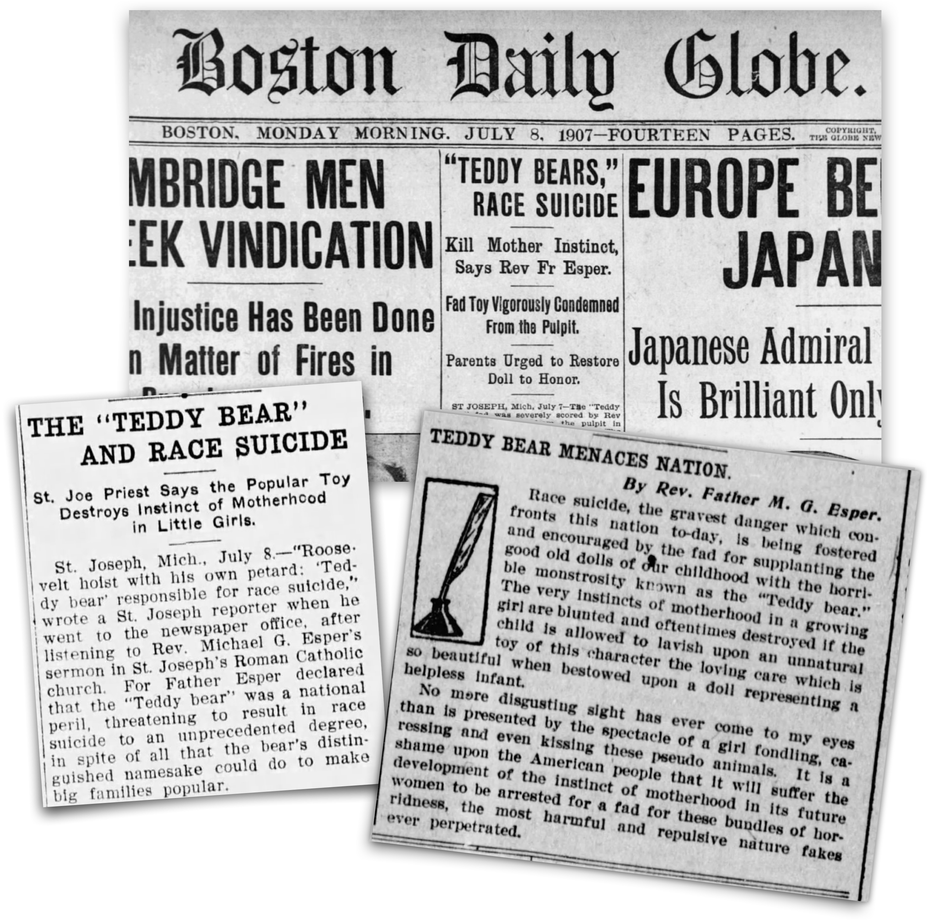 “Race suicide, the gravest danger which confronts this nation today, is being fostered and encouraged by the fad for supplanting the good old dolls of our childhood with the horrible monstrosity known as the ‘Teddy Bear.’”