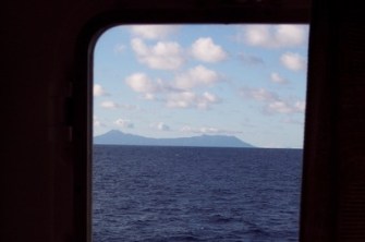 Morning view of Anatahan from my room, R/V Natsushima June 2009.