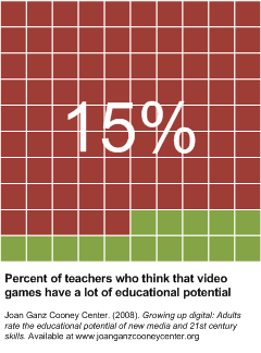 [Video games] build into their designs and encourage good principles of learning … that are better than those in many of our skill-and-drill, back-to-basics, test-them-until-they-drop schools.