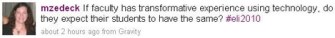 I’ve been thinking about the question that I asked Mary. I wonder how many P-12 teachers or postsecondary faculty have had transformative experiences using technology. In other words, how many of them have personally intersected with some of the world-changing and paradigm-shifting possibilities that are out there? And for those who have, how many of them really understood what happened (i.e., how many recognized the bigger implications of the event that they personally experienced)?
