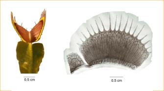 The plants’ bivalved snap trap (left), side view of a destained trap lobe (right)Credit: Fabricant, et al./Scientific Reports