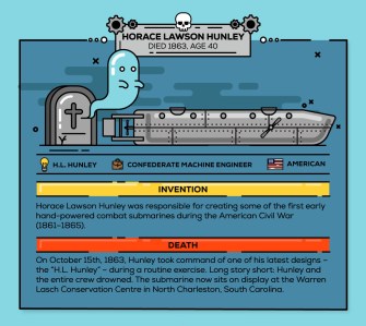 For every Marie Curie, discoverer of radioactivity who died of exposure to the materials with which she bravely worked, there’s a Horace Lawson Hunley, the inventor of a hand-powered submarine who decided to take command during a test run and promptly drowned everyone on board, including himself.