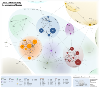 This linguistic map paints an alternative map of Europe, displaying the language families that populate the continent, and the lexical distance between the languages. The closer that distance, the more words they have in common. The further the distance, the harder the mutual comprehension.