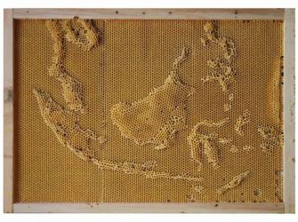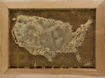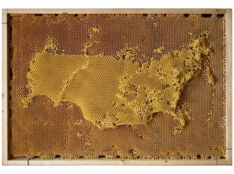 Bees produce honey, beeswax, and… maps? Yes they do, if they’re one of Ren Ri’s swarms. Since he started beekeeping in 2006, the Beijing-based artist has learned to marry the organic industriousness of his apian collectives with the studied artifice of his own, human designs. The resulting structures exude an eerie menace by their unexpected intentionality.