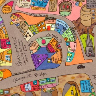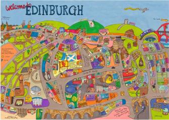 Edinburgh is the “grey metropolis in the North.” It has been for centuries, and thanks to Unesco, the capital of Scotland will keep its dour exterior for the foreseeable future. But couleur locale is all in the mind. This map, by Scottish artist Claire Murray, adds the joyful hues of personal experience to the city.