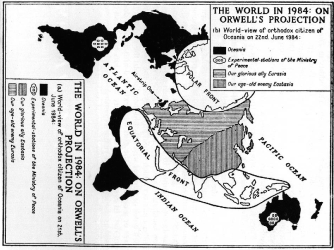 The map shows you the world as it is in Nineteen Eighty-Four, George Orwell’s political parable of a dystopian future (he wrote it in 1948) in which the world is dominated by three totalitarian superstates.