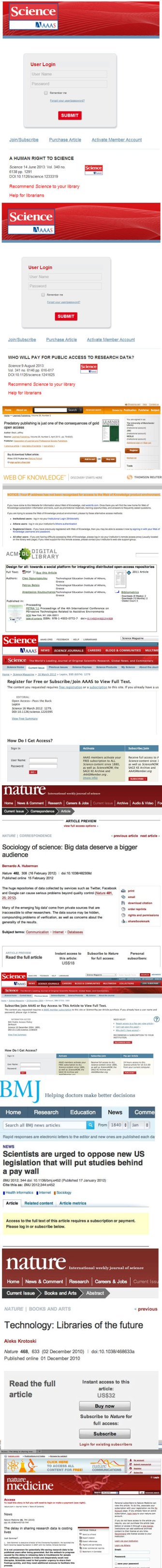 To celebrate the beginning of Open Access Week, find below screenshots of paywalls for a particularly ironic range of papers collected by the Open Access Irony Award Mendeley group.