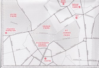 Southwest quadrant, including the Serpentine Boating Lake, “for those really secret meetings.”