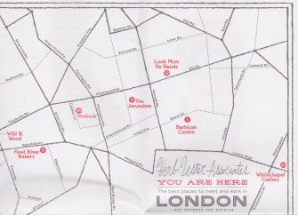 It doesn’t have to be that way. You could step outside of your comfort zone, and take your laptop – or even, come to think of it, your coffee – elsewhere. This charming map, produced by Herb Lester Associates [3], locates a number of locations in Central London where you can have coffee, meet with friends or business contacts, or work on your next blog post, without having to tango with the twin-tailed mermaid.