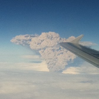 The plume from Puyehue-Cordón Caulle seen on June 4, 2011 from a flight from Puerto Montt to Santiago. Click here to see the original.
