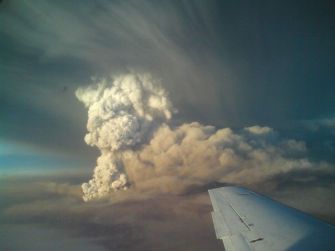 Top left: The eruptive column from the May 21, 2011 eruption of Grímsvötn in Iceland.