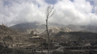 The brief news on Merapi is bad – pyroclastic flows have killed at least 28 people who didn’t get a chance to escape. This is consistent with the reports of burns on many of the victims – the seering gas and ash from the pyroclastic flows will do that, even if you’re on the periphery of the flow (if you’re in the middle, you’re dead). From what I’ve read, the pyroclastic flows were generated by a dome collapse at the summit crater and funneled down the channels on the south side of the volcano. Much of the area and many homes (see below) have been covered in ash as well. There is video of the destruction as well, but be warned, it is graphic. It is also hard to believe that people are already trying to return to their homes on the volcano. Reports today suggest Merapi has settled down some, but is still highly danger – for more details check out the comments from Eruptions readers on the previous Merapi post.