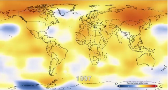 To provide perspective, scientists combined temperature records from over 1000 weather stations since 1880 with modern satellite data. The result is the video below, which shows 130 years of Earth surface temperatures.