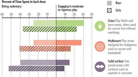 Researchers were interested to know whether grassy areas, playgrounds or asphalt lots influenced children’s activity levels.
