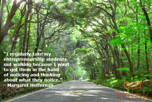 “I regularly take my entrepreneurship students out walking because I want to get them in the habit of noticing and thinking about what they notice.” – Margaret Heffernan