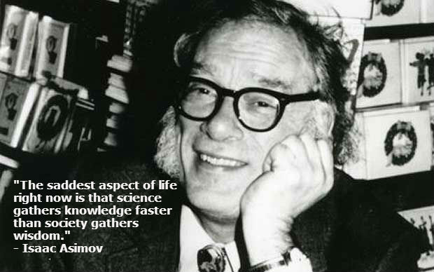 “The saddest aspect of life right now is that science gathers knowledge faster than society gathers wisdom.” — Isaac Asimov