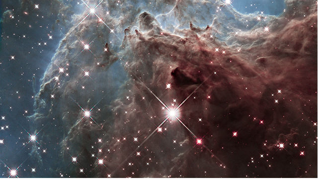 Around 6,400 light-years away, in the constellation of Orion, is this sparkling skyscape captured by the Hubble Space Telescope. On the edge of NGC 2174, this image shows a corner […]