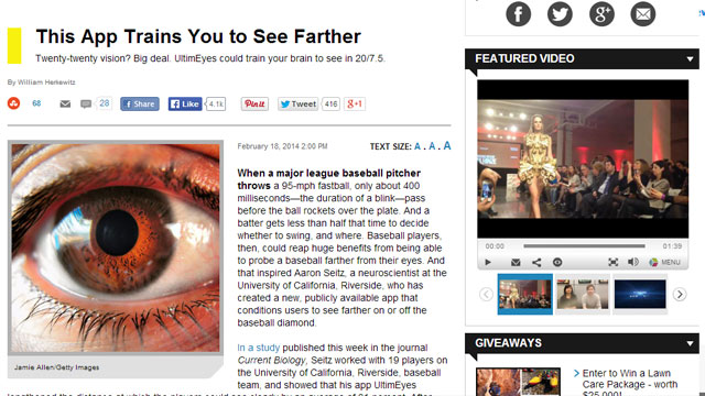 According to an article published yesterday in Popular Mechanics based on an article published this week in Current Biology, a new application named “Ultimeyes” has been created that can train […]