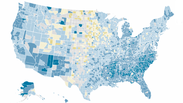 This map shows that your chances of rising above your birth class vary tremendously depending on where you live.
