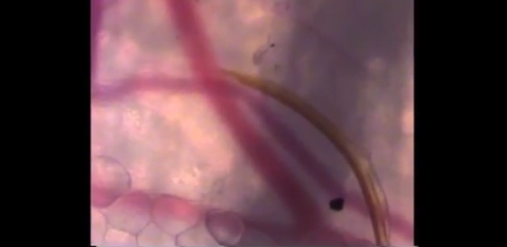 The video below gives us a microscopic view of an event that is happening with great frequency this month: a mosquito is eating human for dinner.