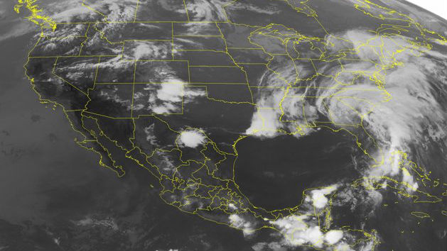 This NOAA satellite image shows the tropical storm Andrea making its way up the East Coast.