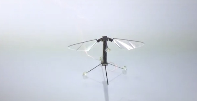This 80-milligram robot is not only the size of an insect, it also maneuvers like flies with the help of piezoelectric muscles and rotating joints.