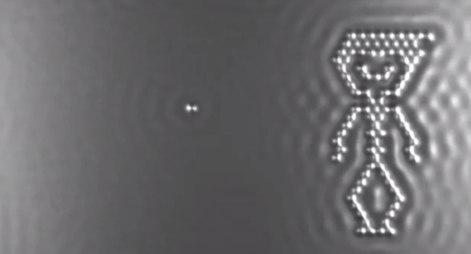 The nano-cinematographers (that’s right, we just made up that word) used a scanning tunneling microscope to move thousands of molecules and make a movie so small it can be seen only when you magnify it 100 million times.