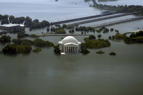 The picture above is an illustration of what the Jefferson Memorial would look like 25 feet underwater.