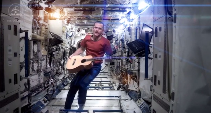 The Canadian astronaut Chris Hadfield just ended his command of the International Space Station, but not before the media-savvy commander issued a fitting sign-off: the first music video from space. Hadfield, who previously got our attention, and that of many others, with this microgravity experiment, performs “Space Oddity,” the 1969 single that launched David Bowie’s career into outer space. Hadfield evidently has Bowie’s blessing, and that of cyperspace. Watch the music video that “wins the Internet” here:
