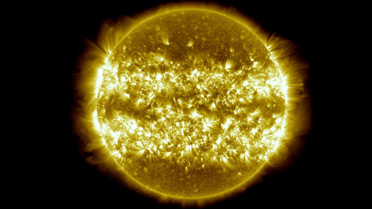 The picture above is a composite of 25 images recorded in extreme ultraviolet light by the Solar Dynamics Observatory over the course of the past year.