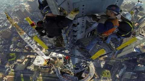 The Port Authority of New York and New Jersey released this image of workers at vertigo-inducing heights as they work to complete the “crown jewel of lower Manhattan,” One World Trade Center.