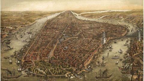 Bird’s Eye Panorama of Manhattan & New York City in 1873.