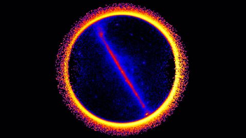 This view is from the orbiting Fermi Gamma-ray Space Telescope’s Large Area Telescope. It shows the Earth’s gamma-ray glow flooding the edges of field. As NASA points out, Earth is actually the brightest source of gamma-rays, the most energetic form of light.