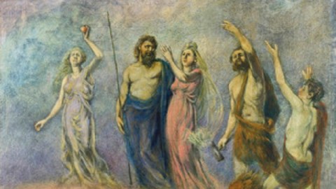 [Image:Hans Thoma (1839-1924). Zug der Götter nach Walhall (The Trek of the Gods to Valhalla) (detail), 1880.]