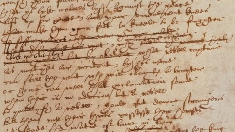 [Image: Detail of manuscript page of Sir Thomas More by “Hand D,” believed to be that of William Shakespeare. Image source.]