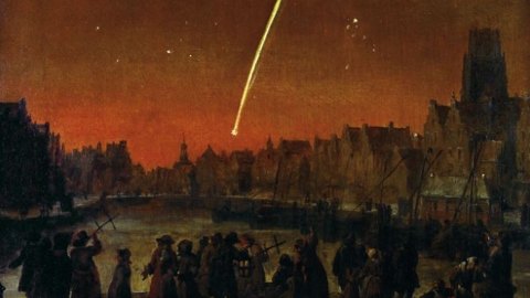 At the end of next month, Comet ISON is expected to be at its brightest, when it is nearest to the Sun. Still, no one knows exactly what it will look like. And so, to provide a hint, NASA dug up the image above, which is Comet Kirch, the Great Comet of 1680 that is pictured above a crowd of Rotterdam in the Netherlands. Some people in the crowd are holding cross-staffs, a primitive angle measuring device.