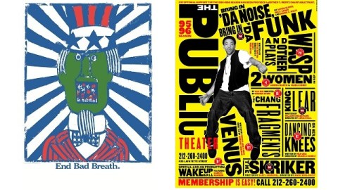 [Image: (Left) End Bad Breath, 1967. Seymour Chwast, American, b. 1931. Poster, offset lithograph, 37 x 24 inches; (Right) 1995-96 Season campaign poster for The Public Theater, 1995, by Paula Scher/ Pentagram.]