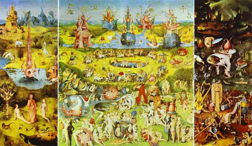 Waal has in mind the “Bonobo-like situation where people frolic around” in the central panel. “There’s actually a thousand people in that middle part who are having sex or having other adventures going on,” Waal points out. That’s what humanity would look like without God and without religion.