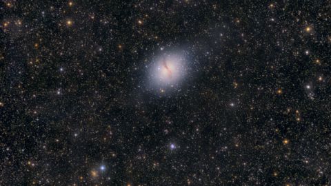 These dust lanes are so thick they almost completely obscure the galaxy’s center in visible light. This is particularly unusual as Cen A‘s red stars and round shape are characteristic of a giant elliptical galaxy, a galaxy type usually low in dark dust. Cen A, also known as NGC 5128, is also unusual compared to an average elliptical galaxy because it contains a higher proportion of young blue stars and is a very strong source of radio emission. Evidence indicates that Cen A is likely the result of the collision of two normal galaxies. During the collision, many young stars were formed, but details of the creation of Cen A’s unusual dust belts are still being researched. Cen A lies only 13 million light years away, making it the closest active galaxy. Cen A, pictured above, spans 60,000 light years and can be seen with binoculars toward the constellation of Centaurus.