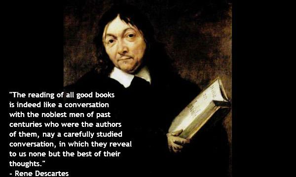 “The reading of all good books is indeed like a conversation with the noblest men of past centuries who were the authors of them, nay a carefully studied conversation, in which they reveal to us none but the best of their thoughts.” – Rene Descartes