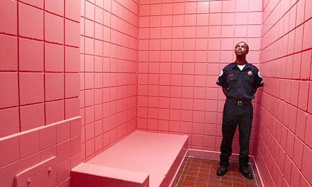 In the video below, Alter shares the illuminating story behind the book’s title. A method of prison discipline involved putting an aggressive inmate in the so-called drunk tank. Psychologists in the 1980s experimented with a number of different colors to see which ones might most effectively pacify the meanest inmates on the cell block. The clear winner? A bubblegum-pink color. Hence, Drunk Tank Pink. Fairly soon football coaches began applying this color scheme to their opponents locker rooms. Pink would make the opposing team more passive while red would make them more aggressive.