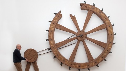 [Image:Michael Landy. Spin the Saint Catherine Wheel and Win the Crown of Martyrdom, 2013. Mixed media. 371 x 440 x 84 cm. Michael Landy, courtesy of the Thomas Dane Gallery, London. © Michael Landy, courtesy of the Thomas Dane Gallery, London / Photo: The National Gallery, London.]