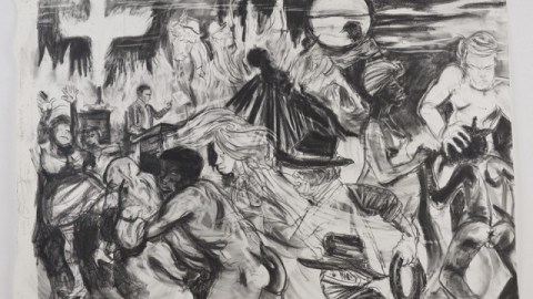 [Image:Kara Walker. The moral arc of history ideally bends towards justice but just as soon as not curves back around toward barbarism, sadism, and unrestrained chaos,2010. Graphite and pastel on 6-by-9½-foot paper.]