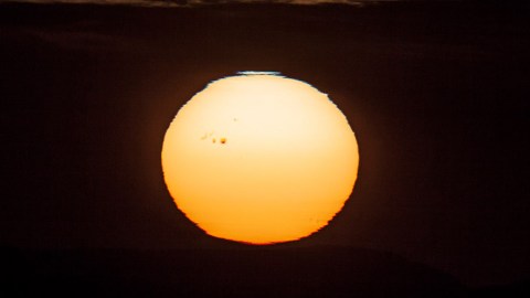 A sunset captured in Switzerland featured a sunspot so large it was visible to the naked eye.