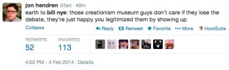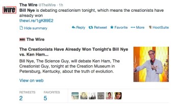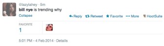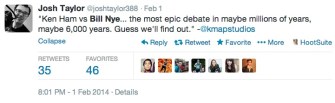 The Bill Nye-Ken Ham/ Science Versus Creationism debate scheduled for tonight (watch HERE @7PM Eastern) has caught fire on social media. Here are some of our favorite Tweets in anticipation of the debate.