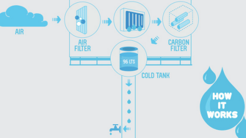The billboard works through a reverse osmosis system, capturing the air humidity, condensing and purifying the water, and filling it up in 20 lt. tanks. In 3 months the billboard has produced 9450 lt., making hundreds of familes happy and eager to see similar systems in other towns.