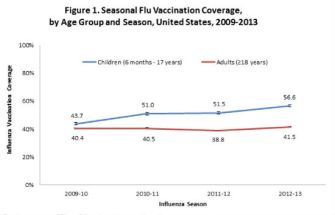 Childhood vaccination rates in the U.S. are above 90%. But in a good season, vaccination rates for seasonal flu hover around 40% for adults and 50% for children.